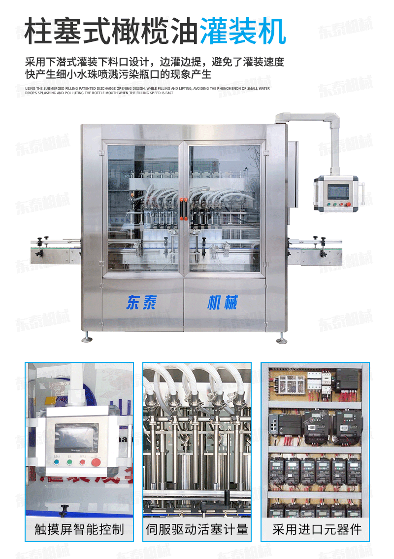 1.真空回吸系統保證灌裝過程中無滴漏現象,不會污染輸送鏈板和瓶體。灌裝頭和氣缸采用分體式機構,可單獨拆卸,不會出現液體滲漏損壞氣缸的情況。進口亞德客氣缸經久耐用,其他密封等配件使用標準件,更換維護簡單方便。